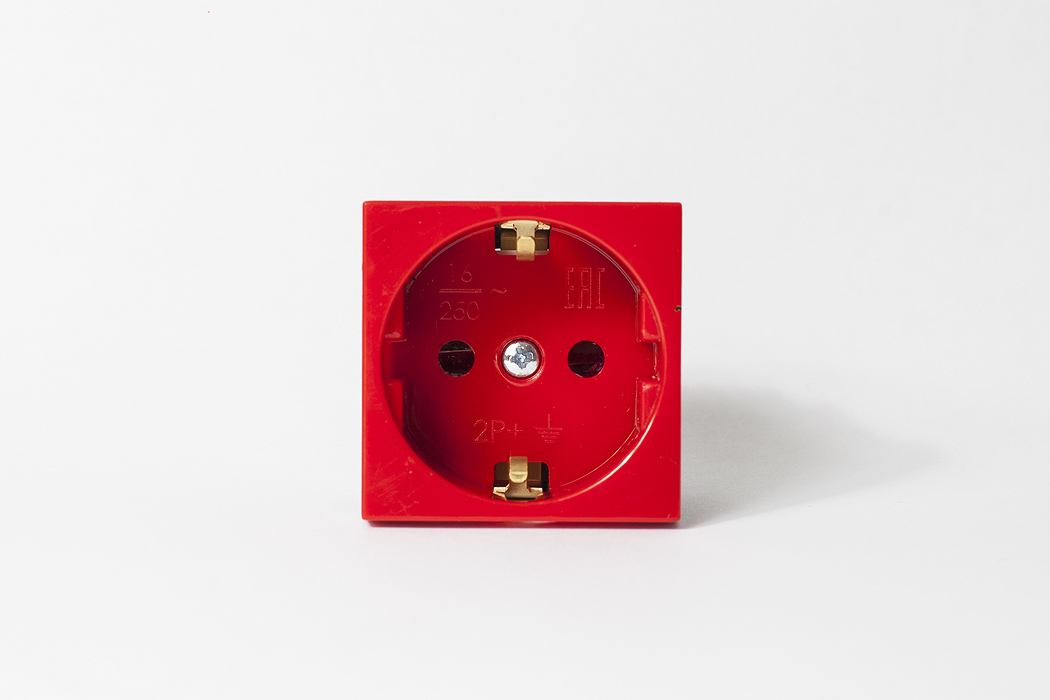 Розетка электрическая 2К+З, с защитными шторками (красный)