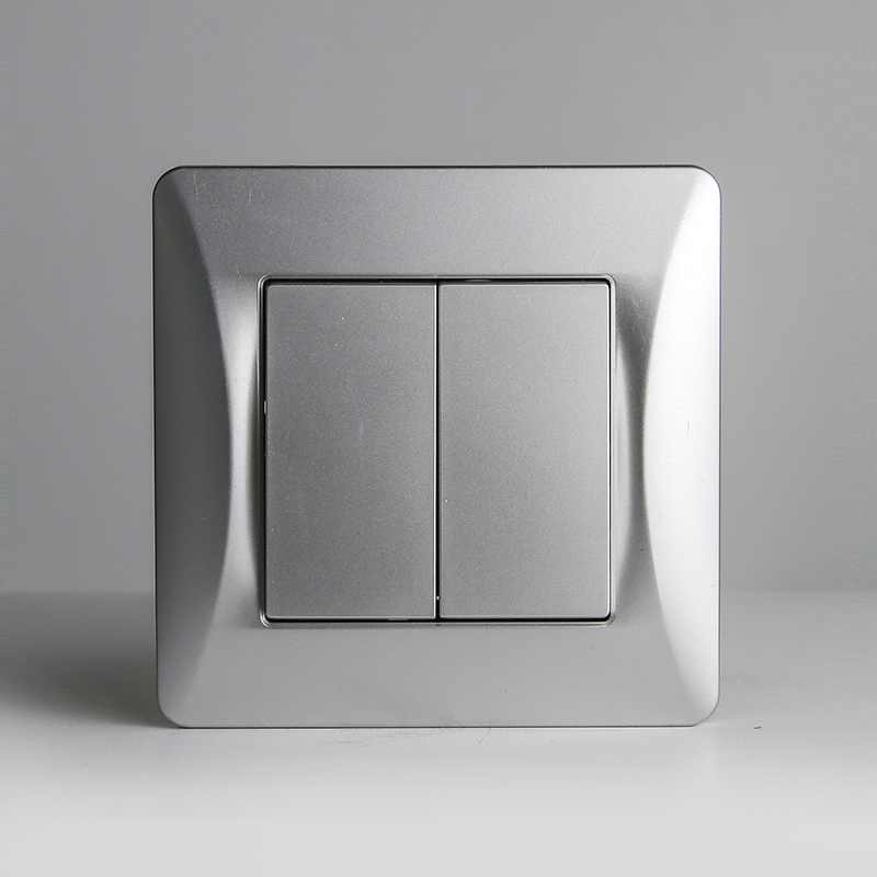 Выключатель двухклавишный, 10А, 220-250V (серебристый)
